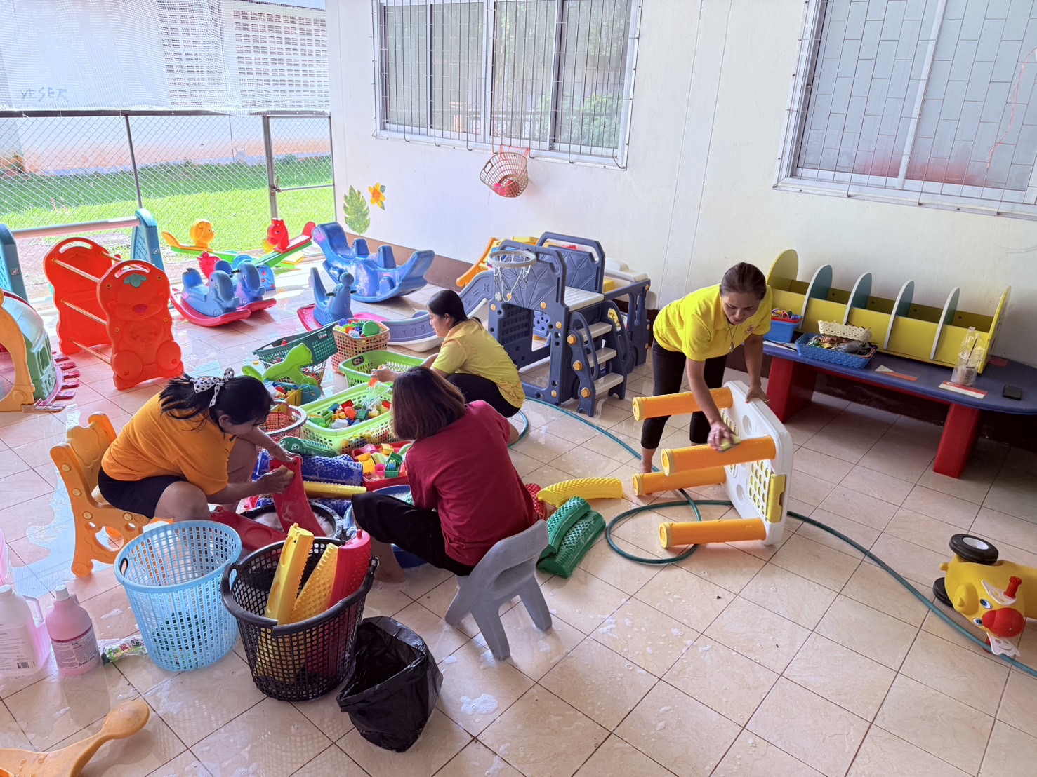 ทำความสะอาดบริเวณภายใน ศพด. เพื่อป้องกันโรค ที่สาม...
