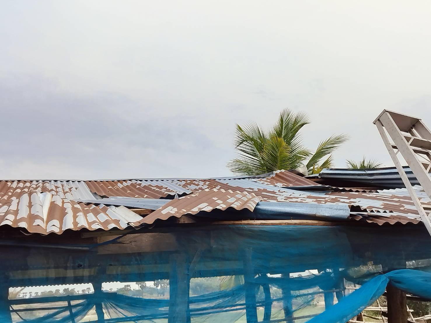 วันที่ 28 เมษายน เจ้าหน้าที่ ตรวจสอบเหตุวาตภัย หมู่ที่ 13 นางมานบ ศรีนอก เป็นหลังคาคอกวัว ขนาด11 ฟุต จำนวน4แผ่น รายละเอียดตามภาพ