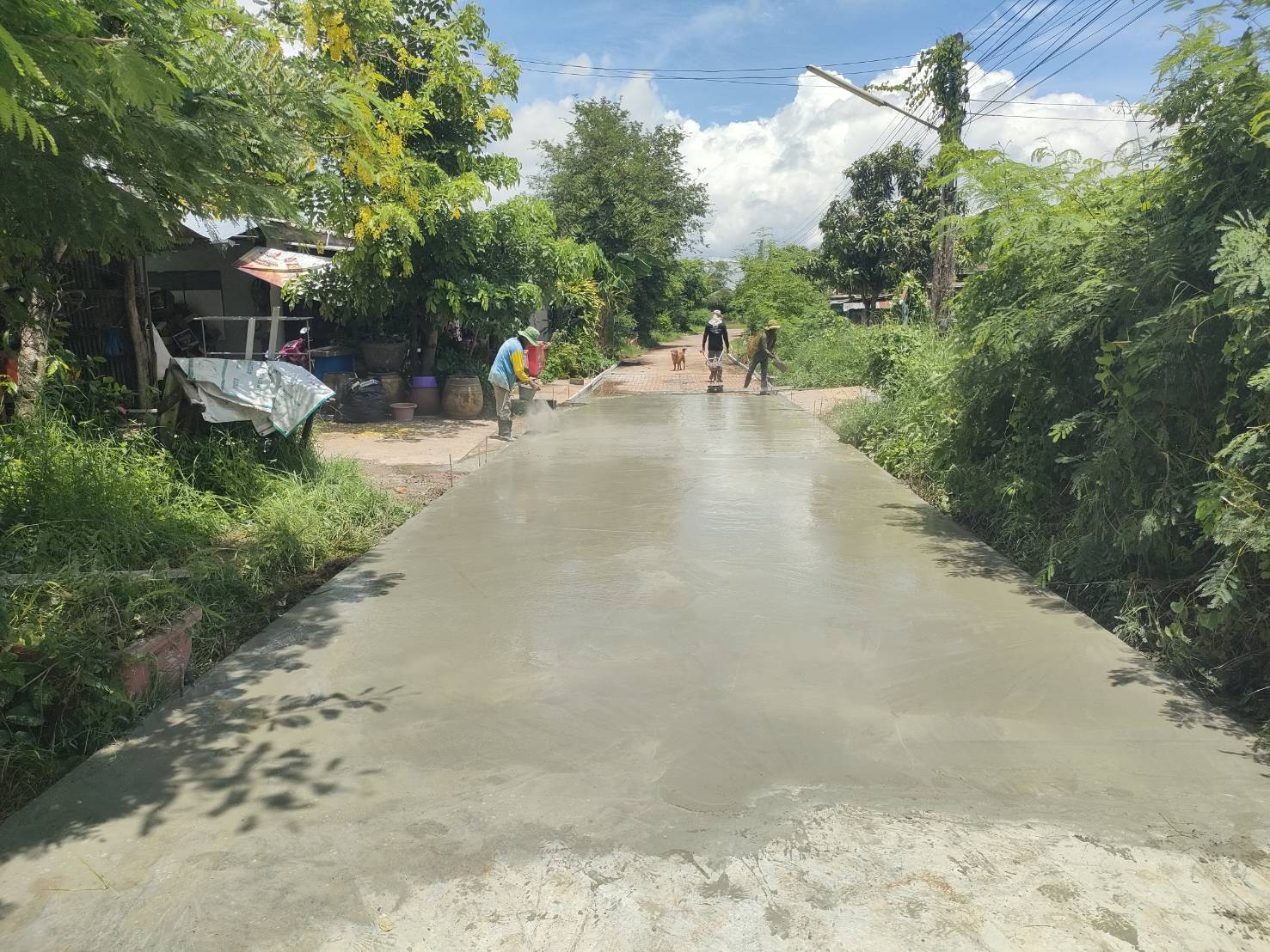 วันที่ 27 พฤษภาคม 2568 ผู้รับจ้างเข้าทำการเข้าแบบ ปูพื้นวายเมท และเทพื้นถนนคอนกรีต บ้านใหม่สามัคคี หมู่ที่ 10