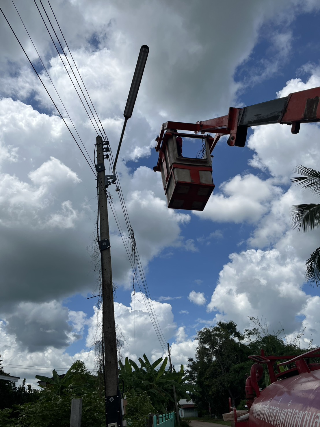 วันพฤหัสที่ 2 ตุลาคม ติดตั้งโคมไฟสองสว่าง หมู่ 11 จำนวน 2 จุด 4 หลอด และซ่อมแซมไฟส่องสว่าง จำนวน 2 จุด 4 หลอด