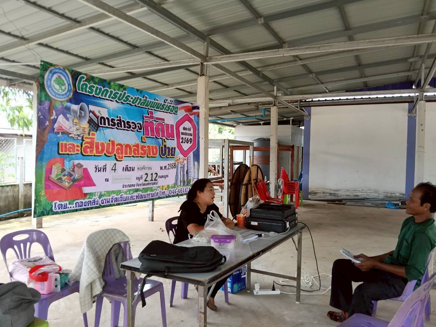 วันที่ 4 พฤศจิกายน 2568 กองคลัง งานจัดเก็บรายได้ ได้สำรวจภาษีที่ดินและสิ่งปลูกสร้าง ประจำปีงบประมาณ 2569 ณ ศาลากลางบ้านพะงาดเหนือพัฒนา ม.12