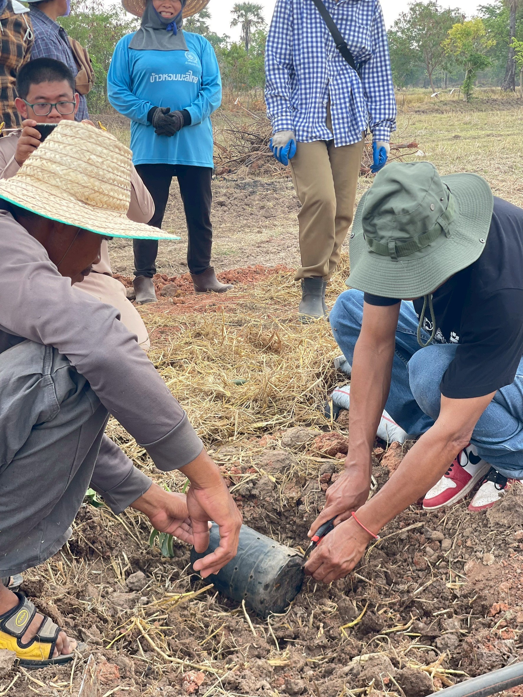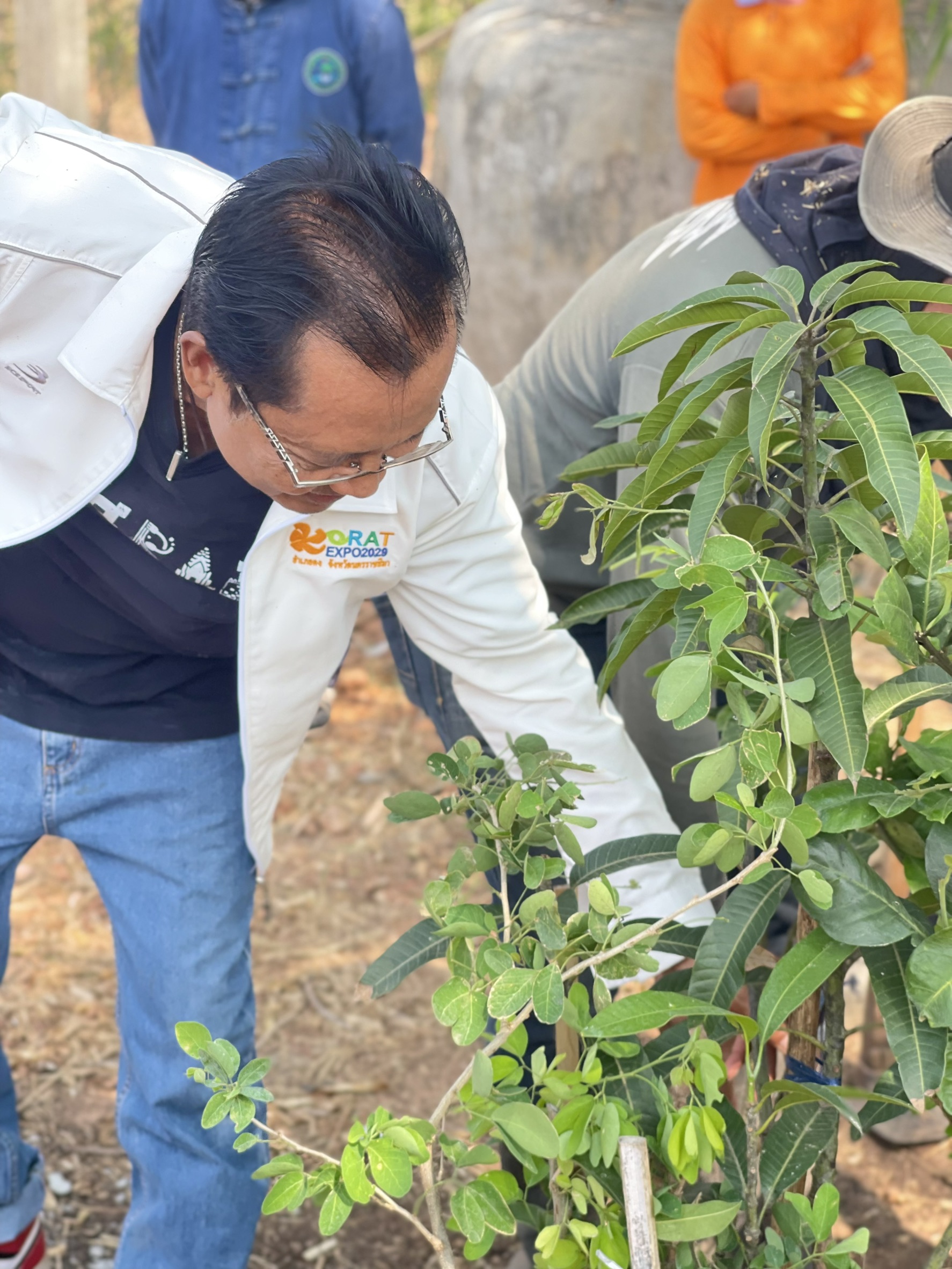 1.1 นายสุวิทย์ คำดี ที่ปรึกษาสถาบันฯ ได้นำต้นไม้ จำนวน 5 ชนิดมาให้แก่เกษตรกรเจ้าของแปลง และได้ให้คำแนะนำเกี่ยวกับขั้นตอนการเตรียมดินในการปลูกต้นไม้ และสาธิตวิธีการปลูกต้นไม้ให้แก่เกษตรกรในพื้นที่ได้รับทราบ โดยท่านที่ปรึกษาสถาบันฯ ได้สาธิตทดลองปลูกต้นส้มโอ พันธุ์ขาวแตงกวา และต้นละมุด ในพื้นที่แปลงเกษตร 1 ไร่ หายจน 100,000 บาท