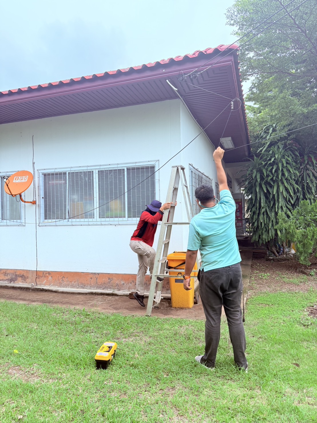 ดึงสายไฟและสายอินเตอร์เน็ตที่หย่อนลงพื้นกีดขวาง เน...