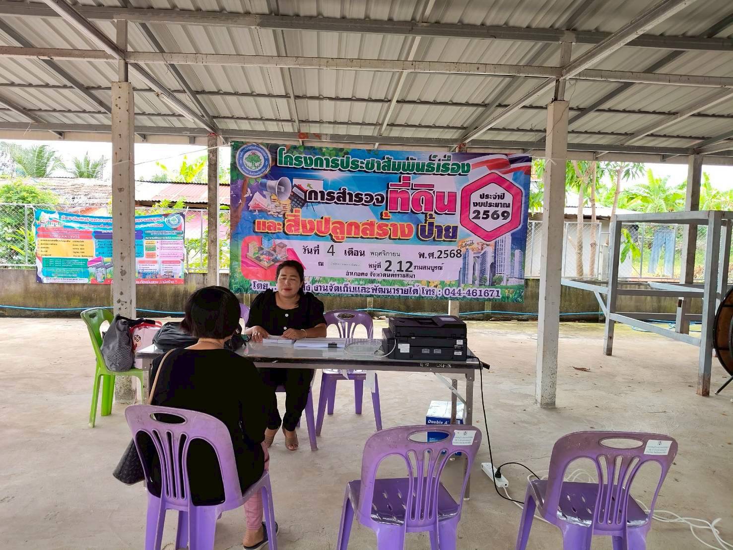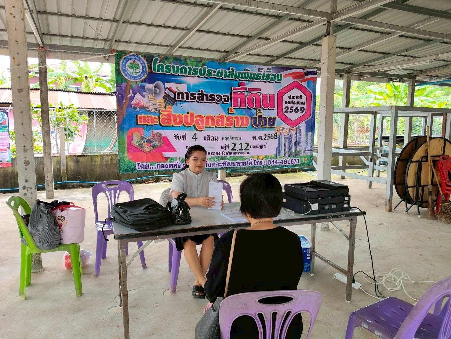 วันที่ 4 พฤศจิกายน 2568 กองคลัง งานจัดเก็บรายได้ ได้สำรวจภาษีที่ดินและสิ่งปลูกสร้าง ประจำปีงบประมาณ 2569 ณ ศาลากลางบ้านพะงาดเหนือพัฒนา ม.12
