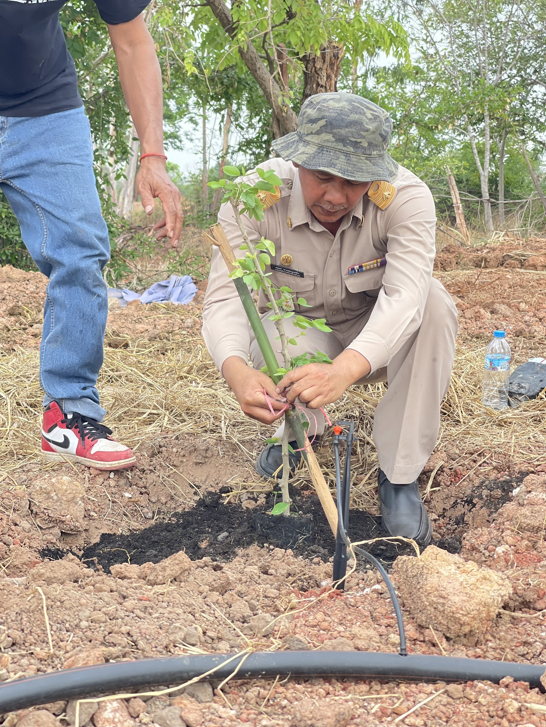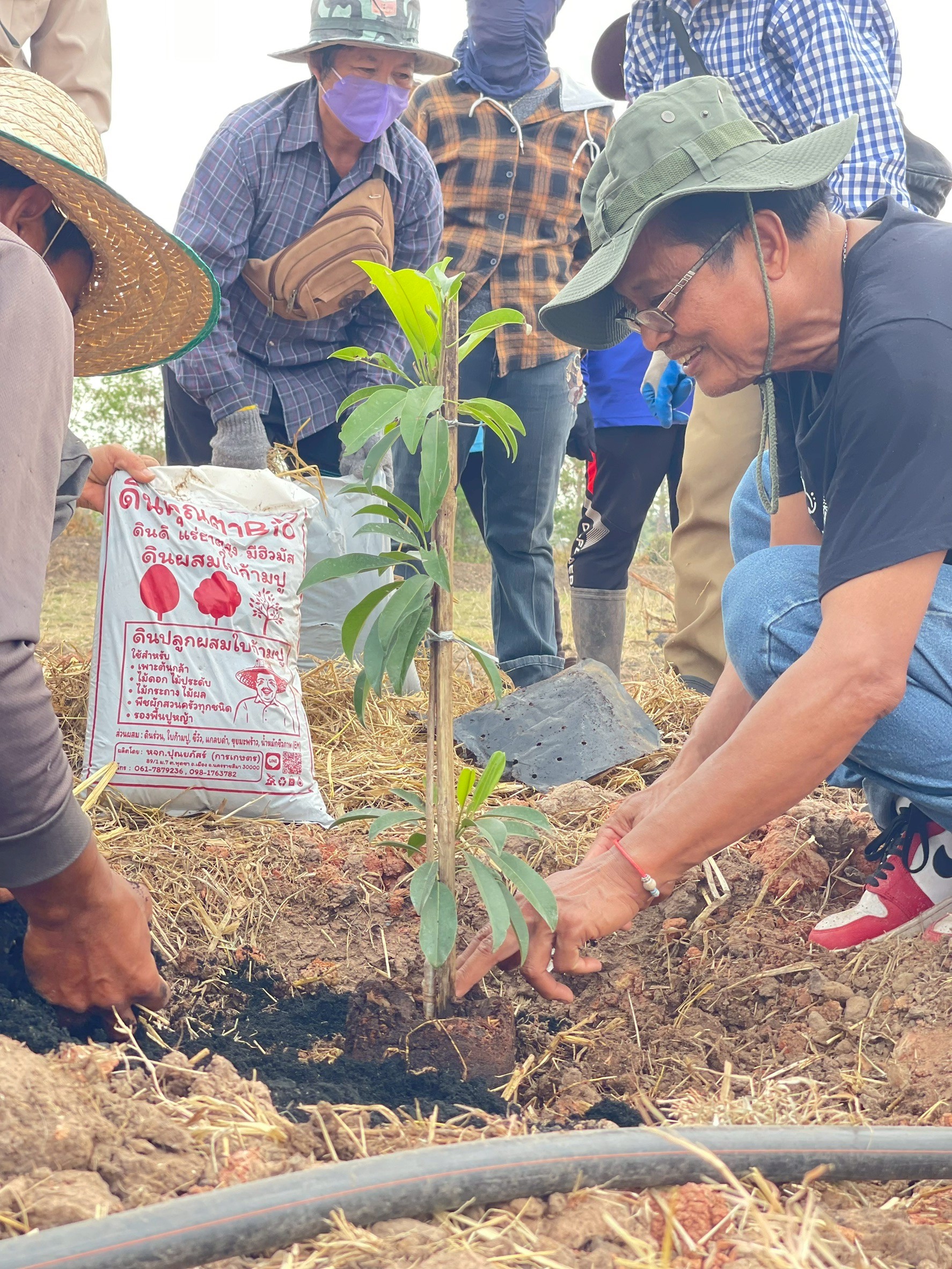 1.1 นายสุวิทย์ คำดี ที่ปรึกษาสถาบันฯ ได้นำต้นไม้ จำนวน 5 ชนิดมาให้แก่เกษตรกรเจ้าของแปลง และได้ให้คำแนะนำเกี่ยวกับขั้นตอนการเตรียมดินในการปลูกต้นไม้ และสาธิตวิธีการปลูกต้นไม้ให้แก่เกษตรกรในพื้นที่ได้รับทราบ โดยท่านที่ปรึกษาสถาบันฯ ได้สาธิตทดลองปลูกต้นส้มโอ พันธุ์ขาวแตงกวา และต้นละมุด ในพื้นที่แปลงเกษตร 1 ไร่ หายจน 100,000 บาท