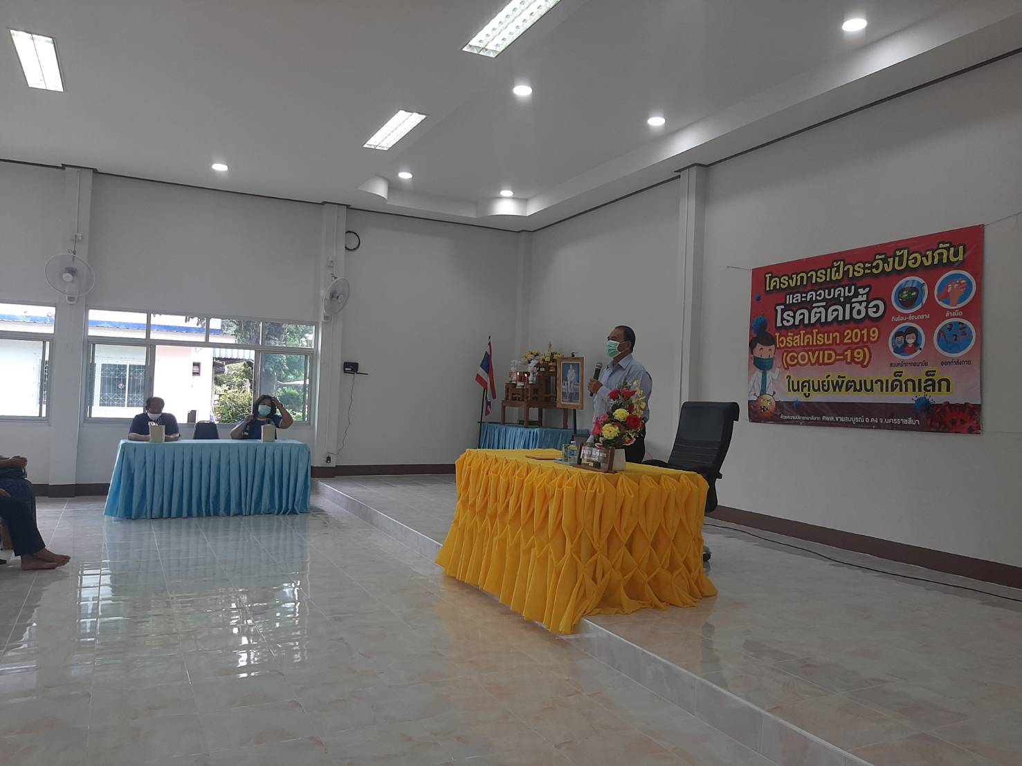 นายกองอาจ ขอศรีกลาง รองมนตรี เกิดมะม่วง รองสมยศ ลาภสมบูรณ์ยิ่ง และเลขาศศิธร ภักดีแก้ว เข้าร่วมโครงการเฝ้าระวังป้องกันและควบคุมโรคติดเชื้อไวรัสโคโรนา2019 ในศูนย์พัฒนาเด็กเล็ก อบต.ขามสมบูรณ์