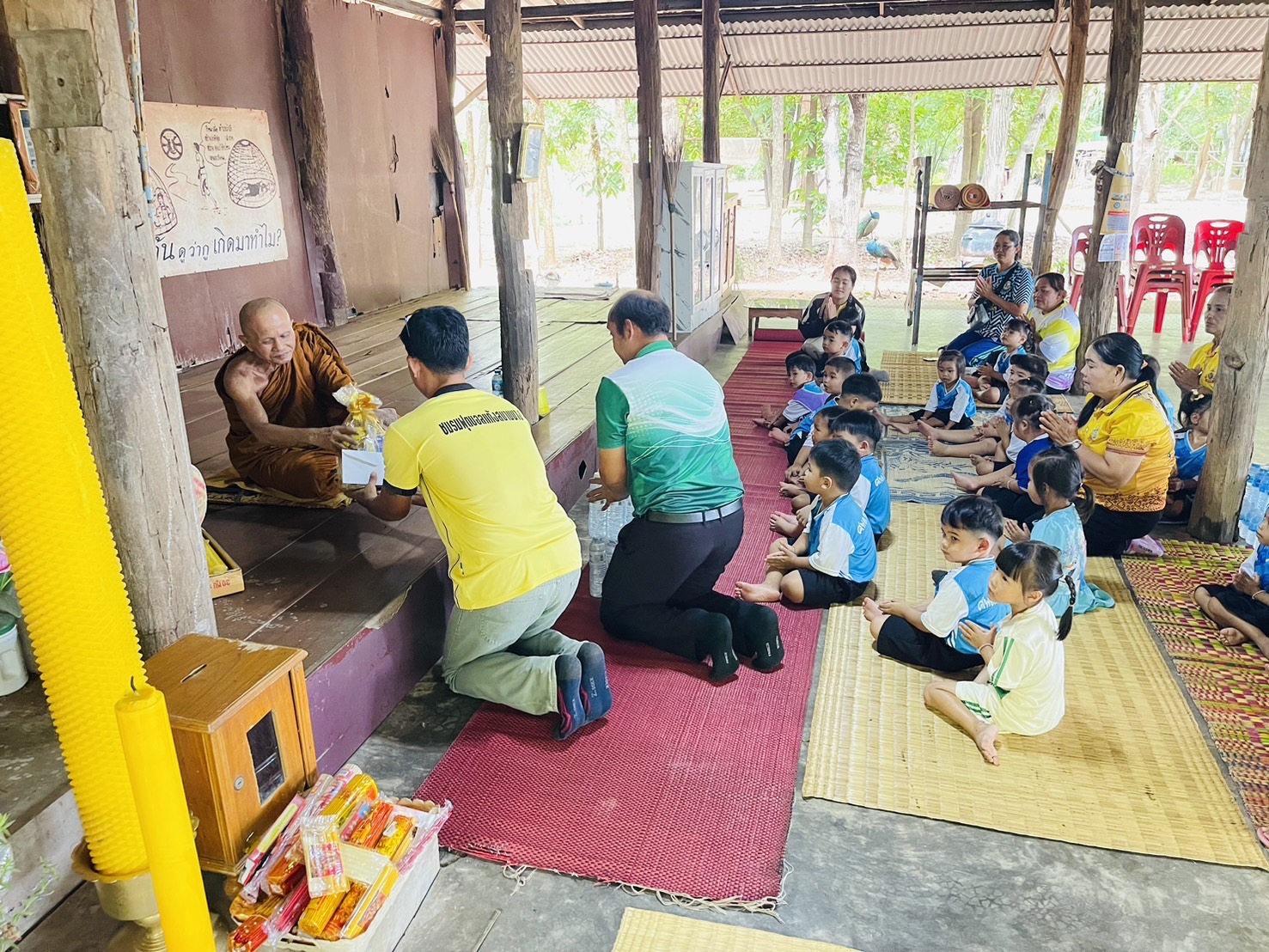 วันพุธ ที่24 กรกฎาคม 2567 นายมนตรี เกิดมะม่วง รองนายก อบต.ขามสมบูรณ์ นายปัญญา ตองกิ่งแดง ผู้อำนวยการกองศึกษา และคณะครู พาเด็กนักเรียน ศูนย์พัฒนาเด็กเล็ก อบต.ขามสมบูรณ์ ร่วมกิจกรรมถวายเทียนพรรษา เนื่องในเทศกาลวันอาสาฬหบูชาและวันเข้าพรรษา ประจำปี 2567 ณ วัดป่าบ้านตะหนอด
